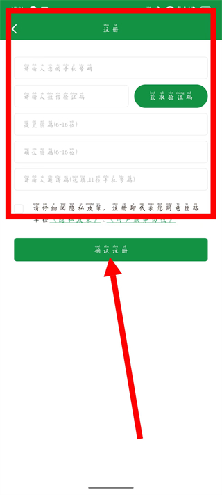 4、依次輸入手機(jī)號碼、短信驗(yàn)證碼、設(shè)置密碼,確認(rèn)密碼,點(diǎn)擊確認(rèn)注冊,完成賬號注冊。