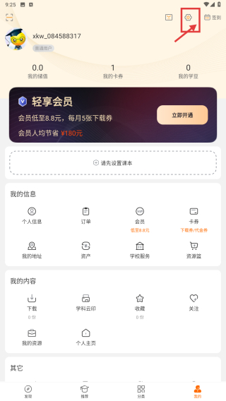 1、打開教育類應(yīng)用,點擊底部我的選項,進入個人中心頁面。