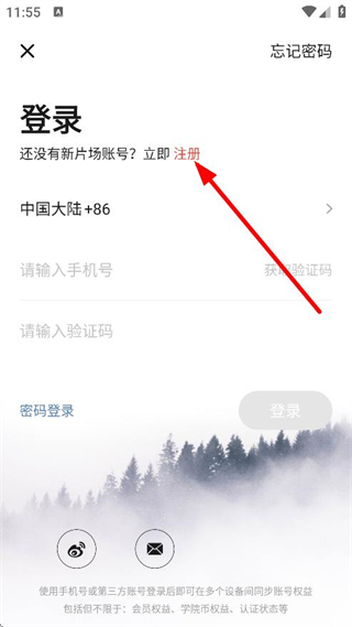 3、在登錄頁面,若沒有新片場賬號,點擊立即注冊,進(jìn)入注冊頁面。
