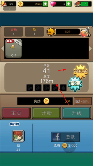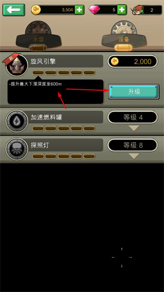 4、通過升級設(shè)備提升最大下潛深度,不斷突破更深海域,獲取更高得分與獎勵。