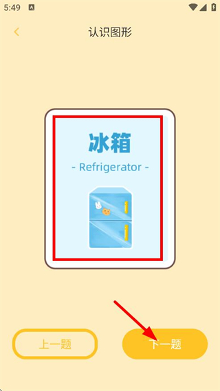 3、在認(rèn)識(shí)圖形頁(yè)面,可查看圖形相關(guān)內(nèi)容,點(diǎn)擊下一題可查看下一個(gè)圖形內(nèi)容。
