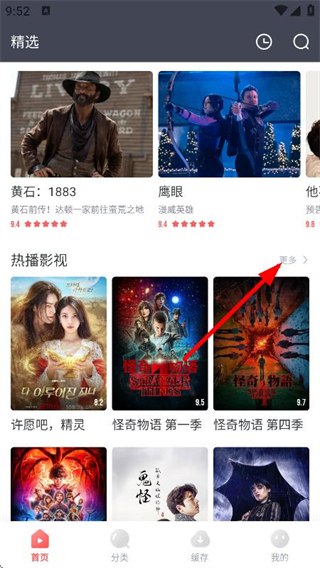 2、在APP首頁,點擊熱播影視處的更多,進入全部分類頁面。
