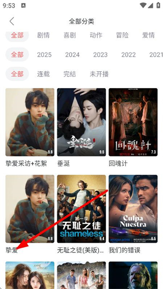 3、在全部分類頁面,選擇感興趣的影視,進入該影視播放頁面。