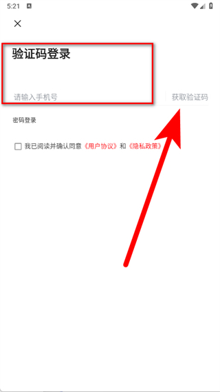 3、進(jìn)入驗(yàn)證碼登錄頁面,輸入手機(jī)號,點(diǎn)擊獲取驗(yàn)證碼。