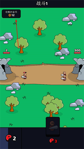 1、在戰(zhàn)斗場景中,操控穴居人部隊(duì)與敵方戰(zhàn)斗,收集金幣,這是積累資源的關(guān)鍵操作。