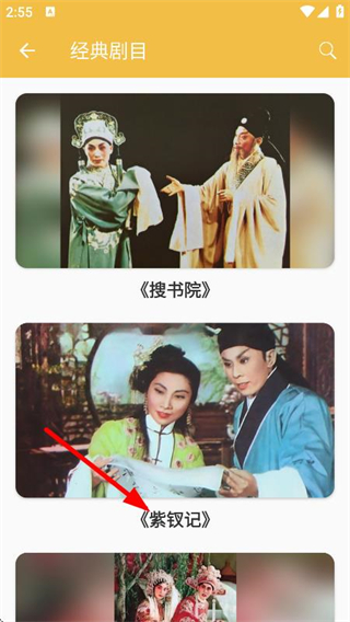 2、在經(jīng)典劇目頁(yè)面,點(diǎn)擊紫釵記,進(jìn)入紫釵記詳情頁(yè)面。