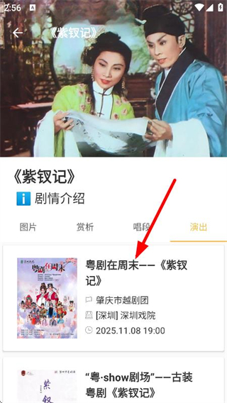 3、在頁(yè)面點(diǎn)擊粵劇在周末紫釵記演出信息,進(jìn)入演出信息頁(yè)面。
