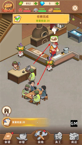 2、店員制作面包,客人到店消費(fèi),完成營(yíng)收收益任務(wù),推動(dòng)店鋪經(jīng)營(yíng)進(jìn)程。