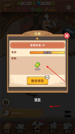 3、完成任務(wù)后領(lǐng)取金幣獎(jiǎng)勵(lì),可選擇雙倍領(lǐng)取,積累資源用于店鋪設(shè)施升級(jí)和發(fā)展。