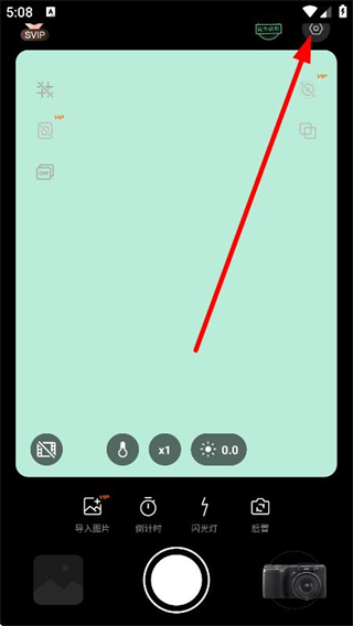 1、在拍攝頁面,點擊右上角設置圖標,進入設置相關頁面。