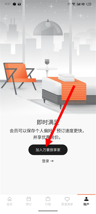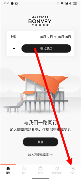 2、進入賬戶頁面,點擊加入萬豪旅享家按鈕。