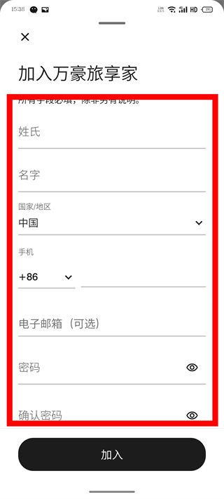 3、在加入萬豪旅享家的注冊頁面,仔細填寫姓氏、名字、等信息。