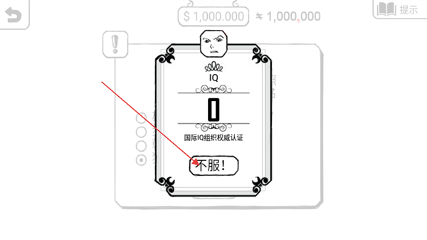 3、遇到顯示IQ0的界面,點擊不服!按鈕,繼續(xù)后續(xù)挑戰(zhàn)。