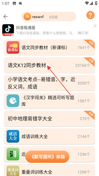 1、進(jìn)入快樂(lè)聽寫,在語(yǔ)文頁(yè)面點(diǎn)擊默寫報(bào)聽,進(jìn)入教材選擇頁(yè)面。