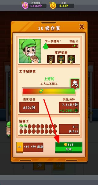 2、也能升級(jí)倉(cāng)庫(kù),升級(jí)倉(cāng)庫(kù)可優(yōu)化供貨等情況,滿足生產(chǎn)需求,推動(dòng)工廠更好運(yùn)轉(zhuǎn)。