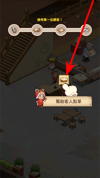 3、進(jìn)入店鋪是經(jīng)營(yíng)的核心環(huán)節(jié),點(diǎn)擊對(duì)應(yīng)入口進(jìn)入店內(nèi)后,玩家要關(guān)注顧客需求,幫助客人點(diǎn)單,從基礎(chǔ)的早餐品類(lèi)開(kāi)始,為顧客提供服務(wù),積累經(jīng)營(yíng)經(jīng)驗(yàn)與收益。