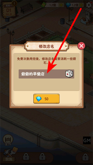 4、店鋪名稱(chēng)可修改,不過(guò)免費(fèi)次數(shù)用完后,修改需要消耗鉆石,玩家可根據(jù)喜好為店鋪命名,打造專(zhuān)屬的早餐店標(biāo)識(shí),讓店鋪更具個(gè)人特色。