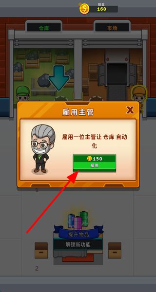 4、花費一定數(shù)量的金幣去雇用專業(yè)主管,主管能夠讓倉庫的運作實現(xiàn)自動化,大大提升工廠整體的運營效率。