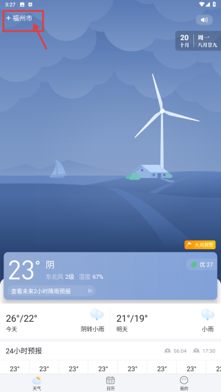 1、打開天氣類應(yīng)用,點(diǎn)擊左上角城市名稱區(qū)域,進(jìn)入城市管理頁面。