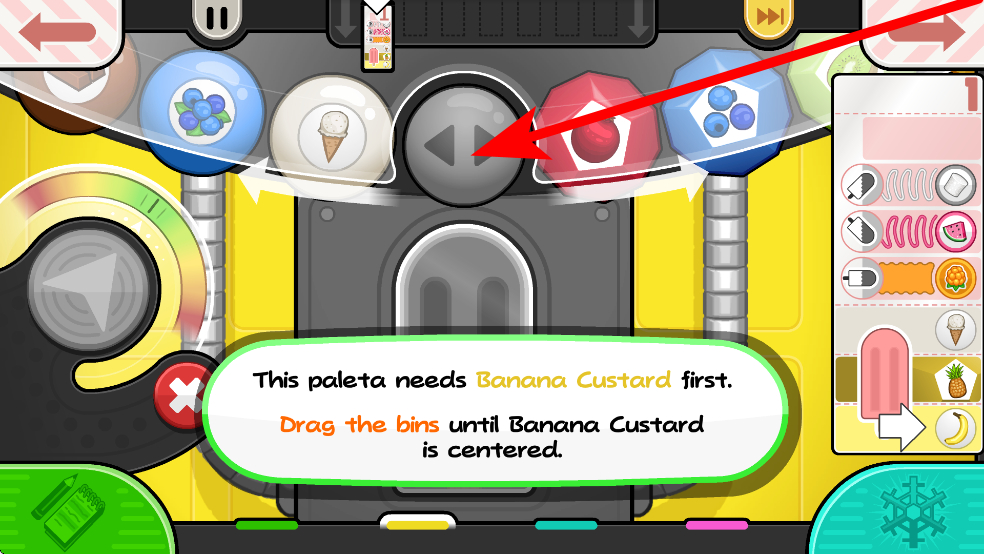 2、制作冰棒前,需調(diào)整食材容器位置,根據(jù)提示將所需食材容器拖動(dòng),使目標(biāo)食材處于中間位置,為后續(xù)制作做好準(zhǔn)備,確保食材能準(zhǔn)確使用。