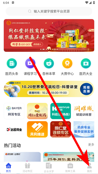 1、打開杏林學(xué)堂Pro,點(diǎn)擊底部導(dǎo)航欄最右側(cè)的我的。