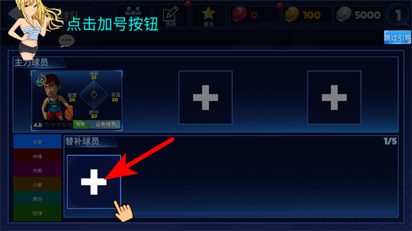 1、在我的球隊(duì)界面,點(diǎn)擊替補(bǔ)球員區(qū)域的加號(hào)按鈕,可添加替補(bǔ)球員,豐富球隊(duì)陣容,提升整體實(shí)力。