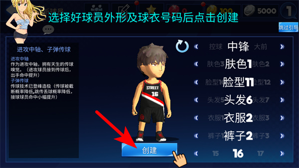 2、在球員創(chuàng)建界面,選擇好球員外形及球衣號(hào)碼后,點(diǎn)擊創(chuàng)建按鈕,即可創(chuàng)建新的球員,注入新力量。