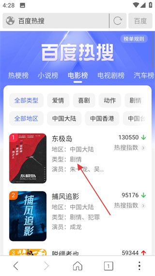 2、在電影板塊,選擇想要觀看的電影進入電影相關搜索頁面。