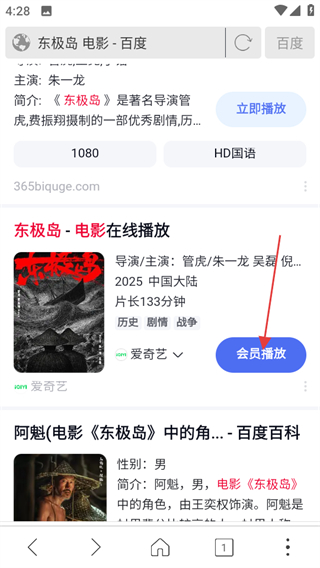 3、在電影相關搜索頁面,選擇想進入的網址,點擊會員播放進入該播放源網址。