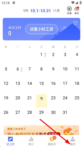 1、在APP主頁面,點擊底部我的,進(jìn)入個人中心頁面。