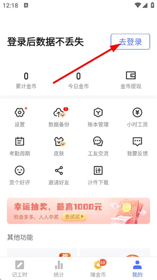 2、在個人中心頁面,點擊去登錄,進(jìn)入登錄選擇頁面。