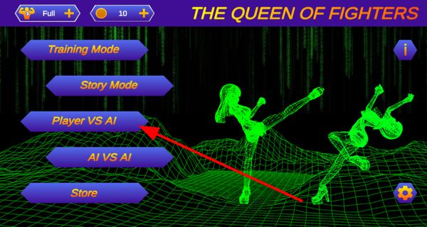 1、主界面選擇訓(xùn)練、故事、玩家對(duì)戰(zhàn)AI等模式,不同模式有不同玩法,玩家對(duì)戰(zhàn)AI模式可與電腦對(duì)手切磋格斗技巧。