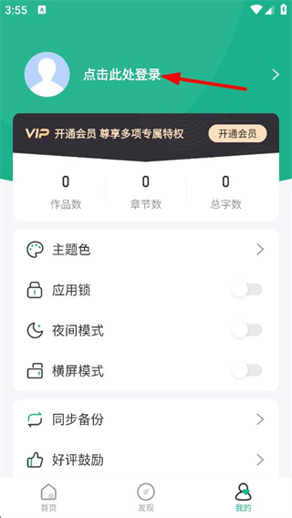2、在個(gè)人中心頁面,點(diǎn)擊點(diǎn)擊此處登錄,進(jìn)入登錄選擇頁面。