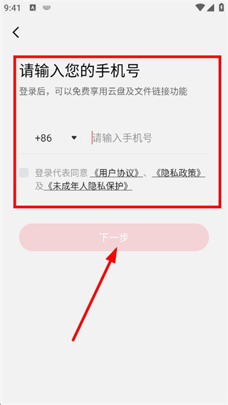 3、在手機(jī)號(hào)輸入頁(yè)面,輸入手機(jī)號(hào),點(diǎn)擊下一步,進(jìn)入驗(yàn)證碼輸入頁(yè)面。