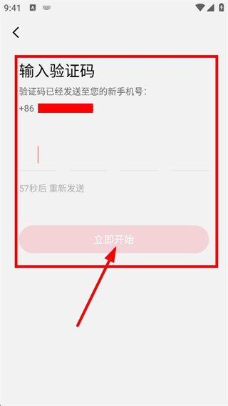 4、在驗(yàn)證碼輸入頁(yè)面,輸入收到的驗(yàn)證碼后,點(diǎn)擊立即開(kāi)始,完成賬號(hào)登錄。