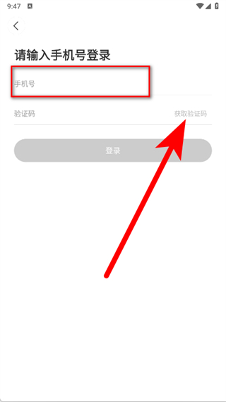 3、在輸入框中輸入手機(jī)號(hào)碼,點(diǎn)擊獲取驗(yàn)證碼按鈕以獲取短信驗(yàn)證。