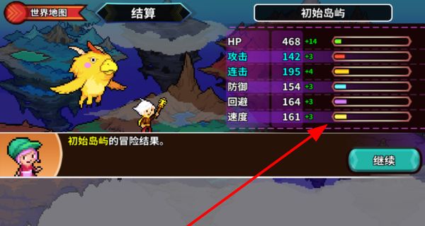 4、冒險結束后會結算龍的屬性,如HP、攻擊、連擊等屬性的提升情況,點擊繼續(xù)可開啟新的冒險或養(yǎng)成操作。