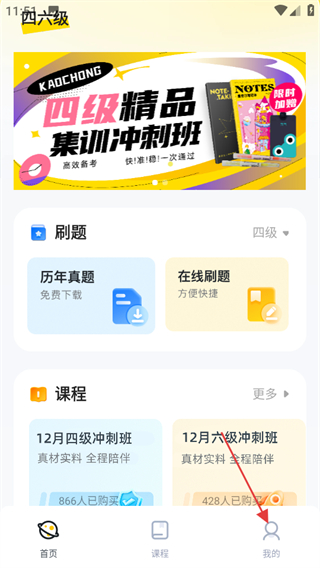 1、打開(kāi)考蟲(chóng),點(diǎn)擊頁(yè)面右下角我的,可進(jìn)入個(gè)人中心頁(yè)面。
