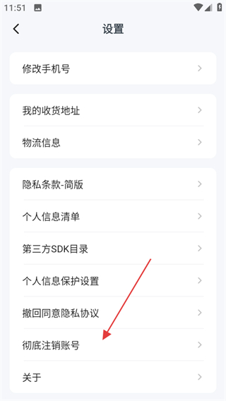3、在設(shè)置頁(yè)面,點(diǎn)擊徹底注銷(xiāo)賬號(hào)可進(jìn)入注銷(xiāo)賬號(hào)說(shuō)明頁(yè)面。