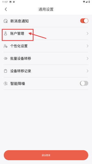 3、在設置頁面,點擊賬戶管理選項,進入賬戶管理頁面。