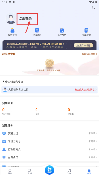 2、在個(gè)人中心頁面,點(diǎn)擊點(diǎn)擊登錄選項(xiàng),進(jìn)入登錄方式選擇界面。