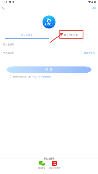 3、在登錄方式選擇界面,點(diǎn)擊賬號密碼登錄選項(xiàng),進(jìn)入賬號密碼登錄頁面。