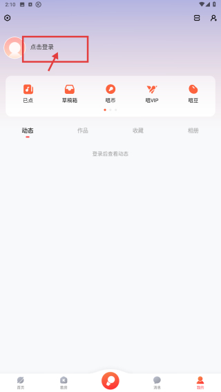 2、在個人中心頁面,點擊點擊登錄選項,進入登錄方式選擇界面。