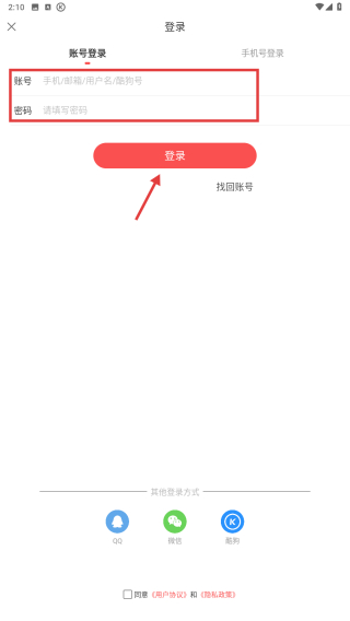 4、在賬號登錄頁面,輸入賬號和密碼后點擊登錄按鈕,完成賬號登錄操作。