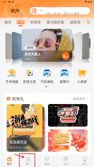 1、打開本地社交應(yīng)用,點(diǎn)擊底部圈子選項(xiàng),進(jìn)入吧友圈頁面。