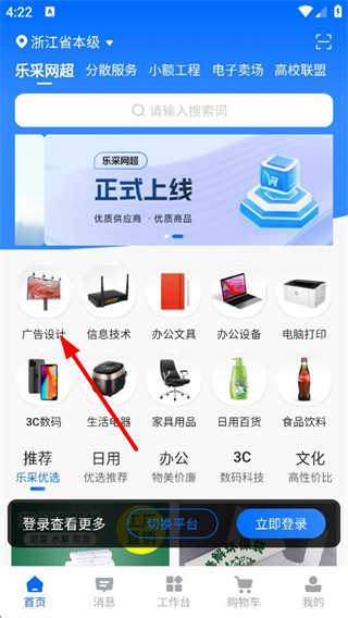 1、在APP首頁,點(diǎn)擊廣告設(shè)計分類,進(jìn)入廣告設(shè)計商品列表頁面。