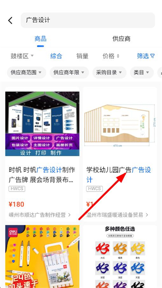 2、在廣告設(shè)計商品列表頁面,選擇想要購買的商品,如學(xué)校幼兒園廣告廣告設(shè)計。
