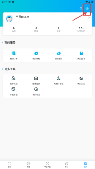 2、在個(gè)人中心頁(yè)面,點(diǎn)擊右上角設(shè)置按鈕,進(jìn)入設(shè)置功能列表。