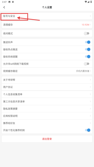 3、在設(shè)置頁(yè)面,點(diǎn)擊“賬號(hào)與安全”選項(xiàng),進(jìn)入賬號(hào)安全頁(yè)面。