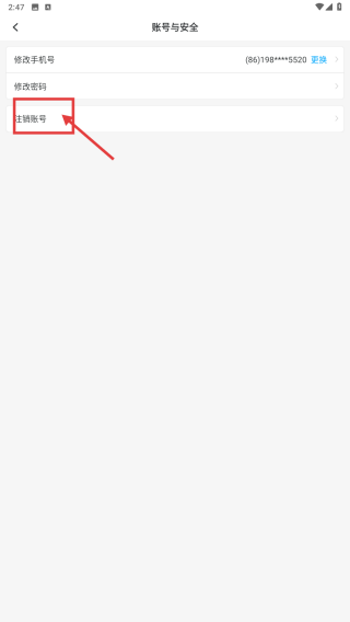 4、在賬號(hào)安全頁(yè)面,點(diǎn)擊“注銷賬號(hào)”選項(xiàng),提交賬號(hào)注銷申請(qǐng)。